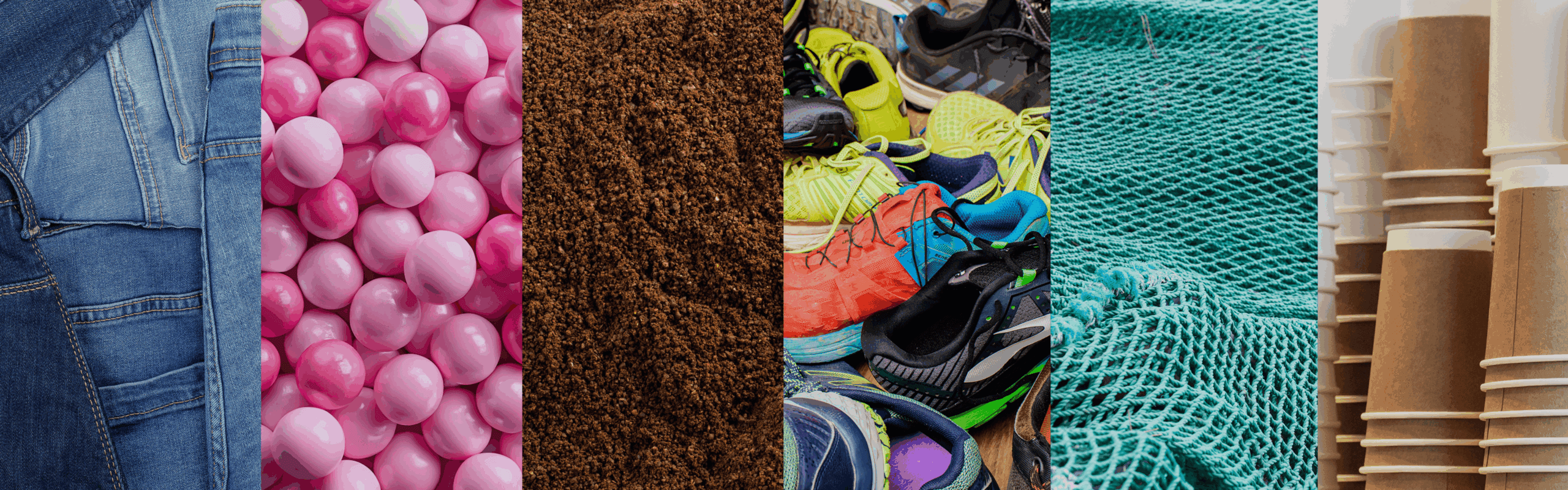 Made From: Fabric, Trainers, Bubblegum, Marine Plastic, Paper Cups, Coffee Waste